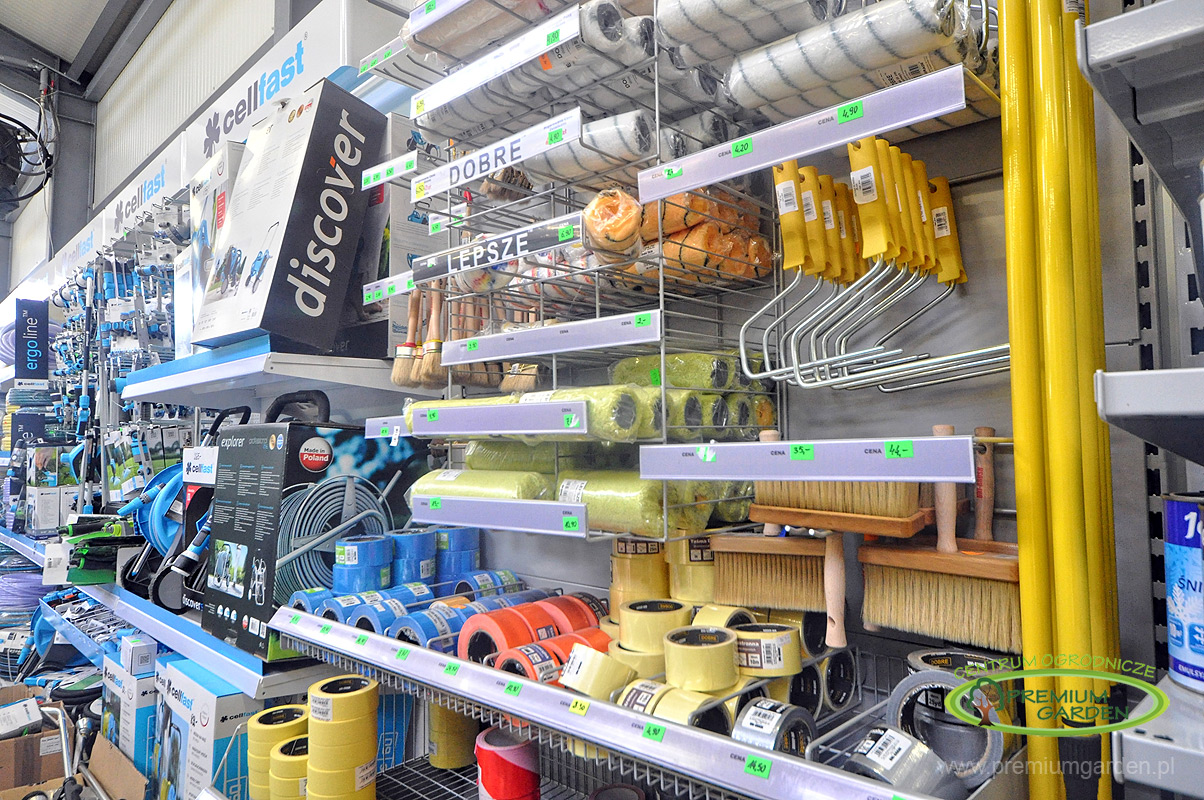 Z myślą o klientach zajmujących się (większym lub mniejszym) majsterkowaniem utworzyliśmy dział z narzędziami budowlanymi i malarskimi. Tutaj mogą Państwo nabyć m. in.: gwoździe, nakrętki, śruby, tarcze, wkręty, zszywki, wiertła, wiadra budowlane, kastry, pace, pędzle, wałki, farby, lakiery, rozpuszczalniki, wapno, taśmy, sznurki, jak również wiertarki, wkrętarki, szlifierki, młotki, siekiery itp